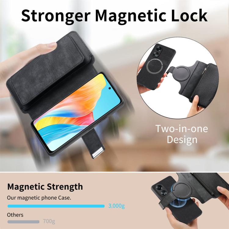 CaseNeo MagSafe RFID Anti-theft Zipper Wallet Retro Leather Phone Case, For OPPO A58 4G