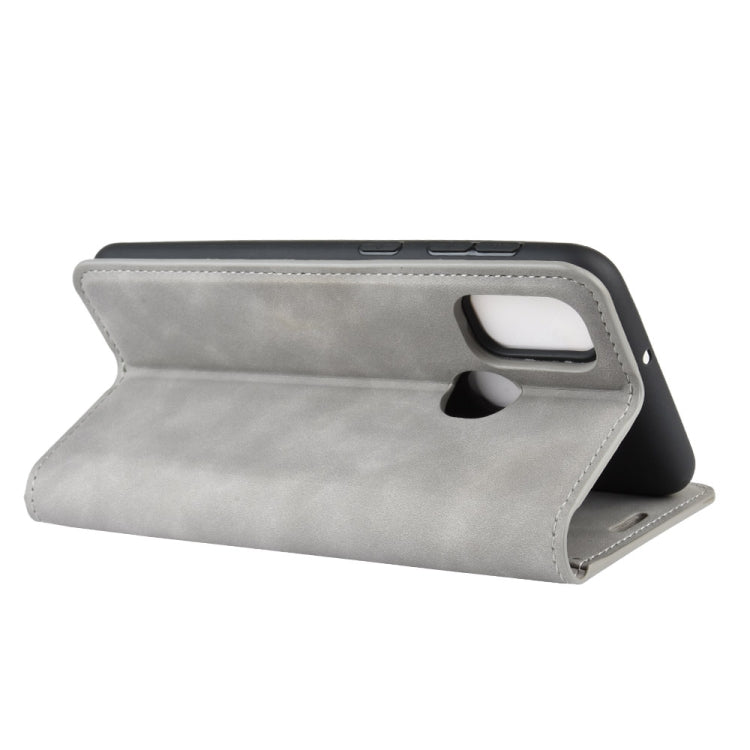 For Galaxy M30s Retro-skin Business Magnetic Suction Leather Case with Holder & Card Slots & Wallet