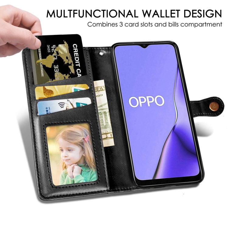 For OPPO A5 2020 / A9 2020 Retro Solid Color Leather Buckle Phone Case with Lanyard & Photo Frame & Card Slot & Wallet & Stand Function