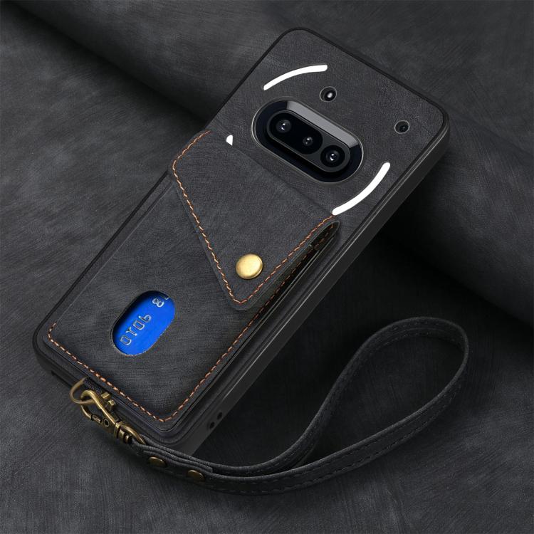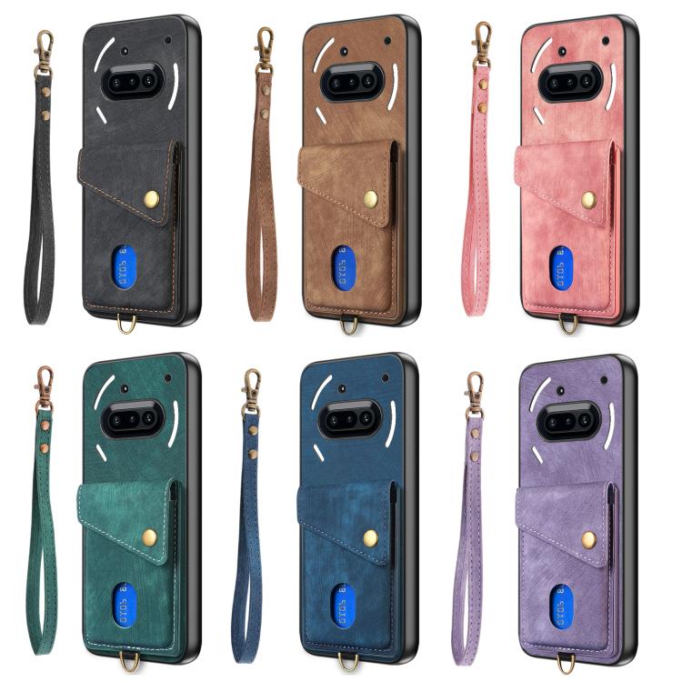 Retro Card Wallet Fold Leather Phone Case with Strap