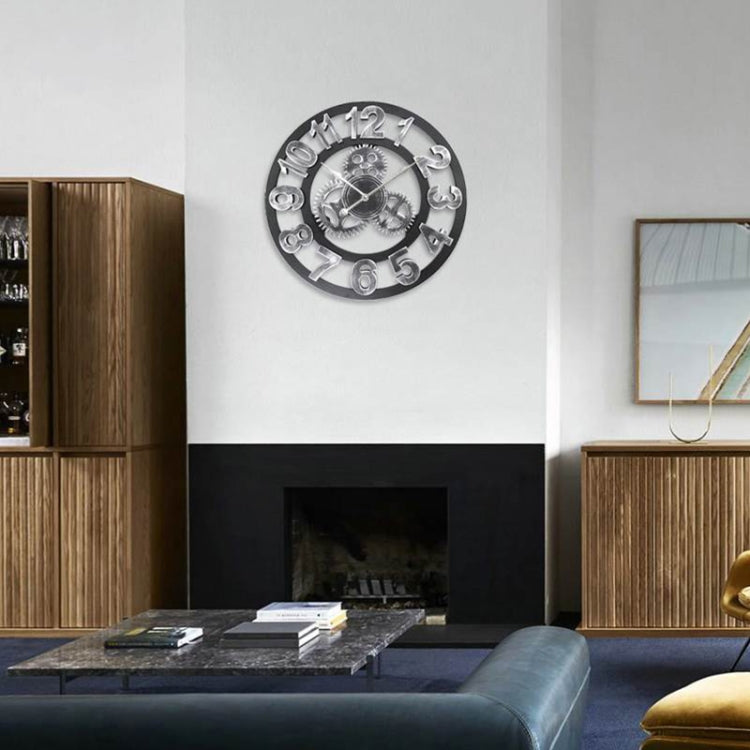 Retro Wooden Round Single-sided Gear Clock Number Wall Clock, Diameter: 58cm